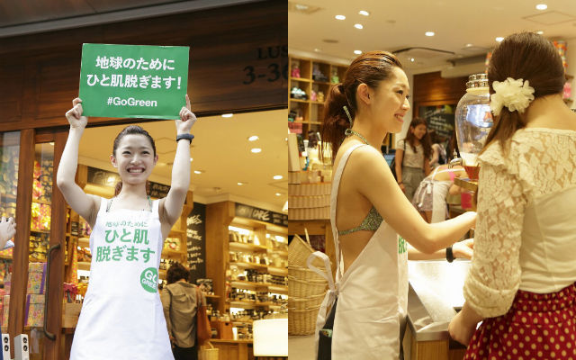 6月の環境月間に合わせて『ラッシュが、地球のためにひと肌脱ぎます』をスローガンに、2014年6月9日(月)より「GO!GREEN キャンペーン」を行っているLUSH(ラッシュ)。環境負荷軽減に向けたアクションとして、固形商品のプラスチックパッケージをはずした販売方法「Naked(ネイキッド販売)」を一部店舗を除き全国のショップにて実施している(▶︎詳細はこちら)が、このキャンペーンに合わせて全国各地のショップでさまざまなイベントが開催される。