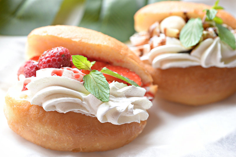 マラサダサンド(ミックスベリー・ココナッツバナナ・マカダミアチョコ) 各¥281(税込)