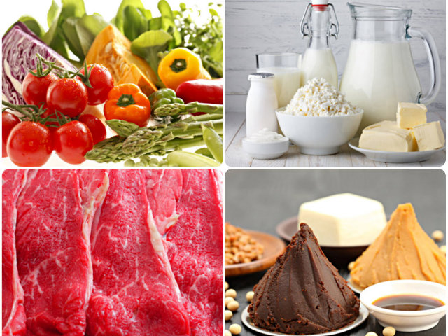 緑黄色野菜、にんにく、玉ねぎ、大豆製品(納豆、豆腐、味噌、小豆等)、青魚(さんま、さば、いわしなど)、さけ、玄米、そば、ベリー類、パイナップル、グレープフルーツなど