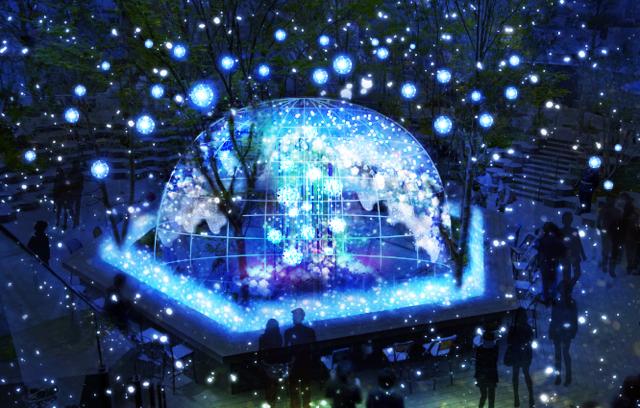 今回の体験型イルミネーションは、映像プロジェクターを光源とする光ファイバーを使用した独特な手法で、LEDイルミネーションでは表現できない繊細な光の表現を実現したとのこと。