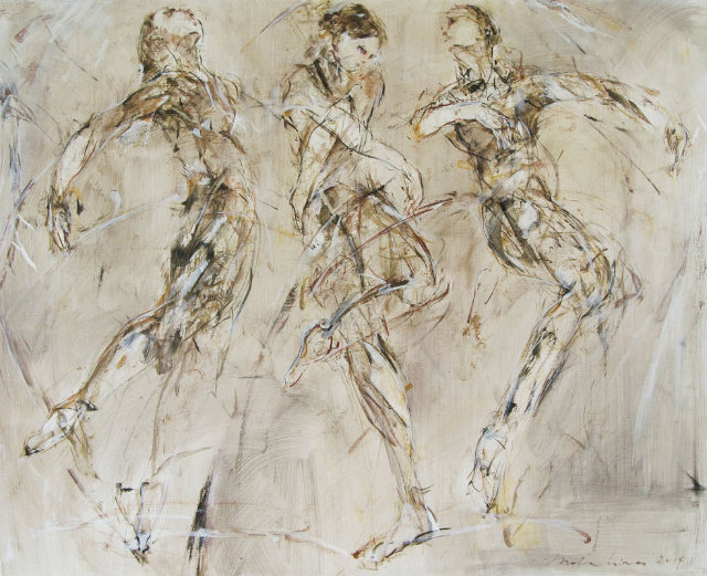 シンプルな色彩で表現された大胆かつ繊細な松島の世界観は、見る人の想像力を強く刺激する作風だ。近年は、バレリーナや舞踏家による、コンテンポラリーダンスの動き一瞬一瞬を描く作品を生み出している。