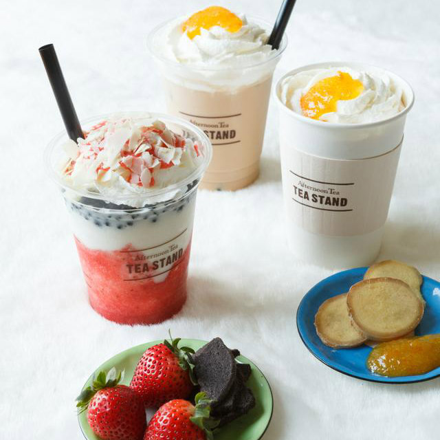 2014年11月6日(木)よりアフタヌーンティー・ティースタンド全店で新発売される「ストロベリー&クッキーバニラ」は、ストロベリーソース、バニラベースのフローズン、ココアチップクッキーを重ねた、いちごのつぶつぶ食感が楽しいスイーツのようなドリンクだという。