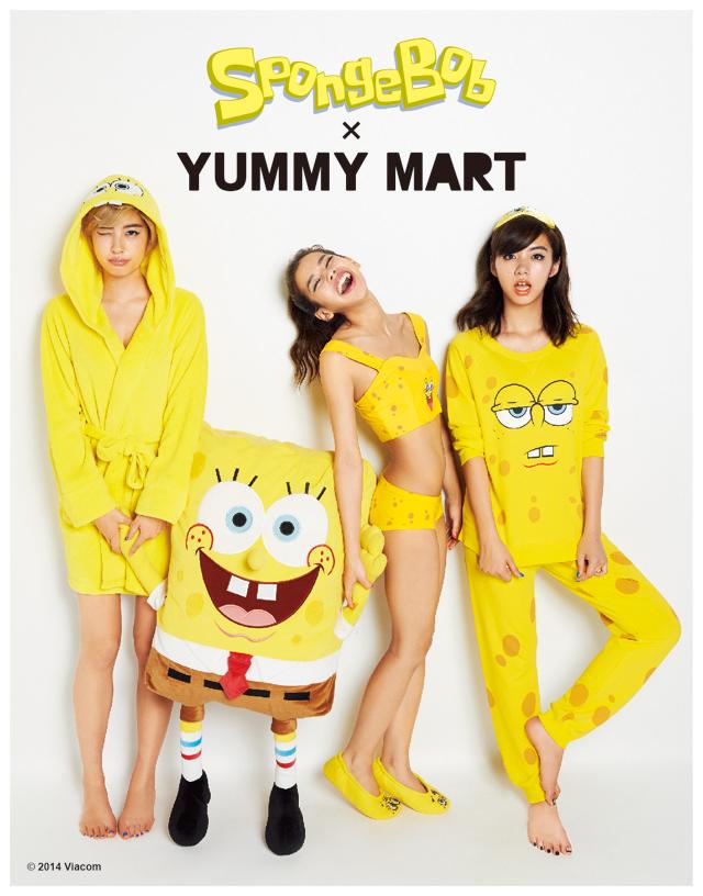 アメリカ発の大人気アニメーションキャラクター「スポンジ・ボブ」が「YUMMY MART(ヤミーマート)」とコラボ♪ 2014年11月12日(水)より、YUMMY MART全店およびオンラインストアで、ユニークなデザインの見事なコラボアイテム(全6アイテム)の発売がスタートする。