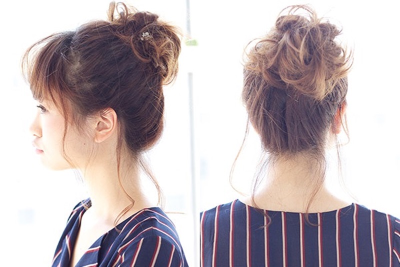 お団子を作る際に髪の毛を分けて留めることでボリューム調整ができます。 横から覗く飾りゴムがおしゃれ上級者に見える隠れポイント!