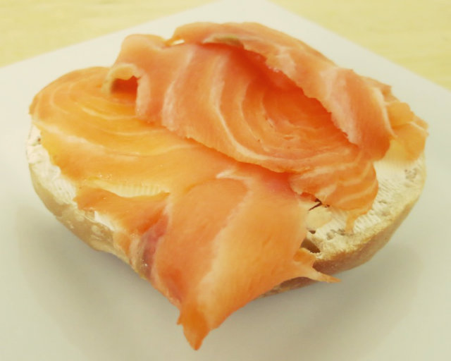 帰り道にベーグルを購入して、スモークサーモンとクリームチーズでオープンサンドをつくれば、最高品質のスモークサーモンたっぷりの、とっても贅沢な「サーモンベーグル」が完成しちゃいますよ♪