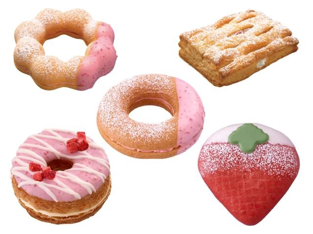 この季節、旬のいちごを使ったさまざまなスイーツが登場しているが、ミスタードーナツでは“いちご”フレーバーのドーナツとパイの新商品(全5種)がラインアップ! 2015年2月25日(水)から「ストロベリードーナツフェス」を期間限定で開催する。