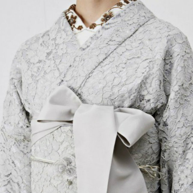 まさにこれは“レースのワンピース”という雰囲気。エレガントかつドレッシーで、従来の訪問着とはまったく異なったポジションでドレスアップシーンに活躍しそうですね。お友達のカジュアルな結婚パーティにもおすすめです。