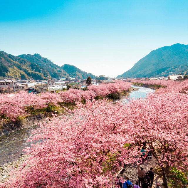 なかでもここ数年で広く知れ渡ってきた早咲きの「河津桜」は、いままさに満開を迎えています。