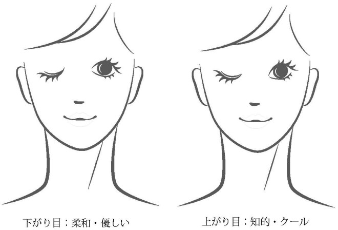 *下がり目:目頭の高さよりも目尻の高さのほうが低い