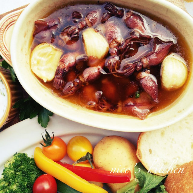 |ホタルイカのアヒージョ たっぷり野菜添え