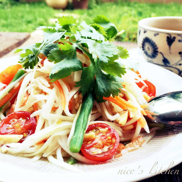 そこで今日は、そんな青パパイヤを手軽にたっぷり食べられる、タイの代表的なサラダ「ソムタム」をご紹介します。