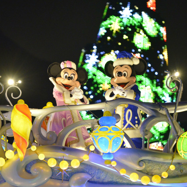 パレードは今年初登場の「ディズニー・クリスマス・ストーリーズ」。絵本の中から飛び出してきた、クリスマスを楽しむディズニーの仲間たちの物語がパレードになって綴られるそうです。