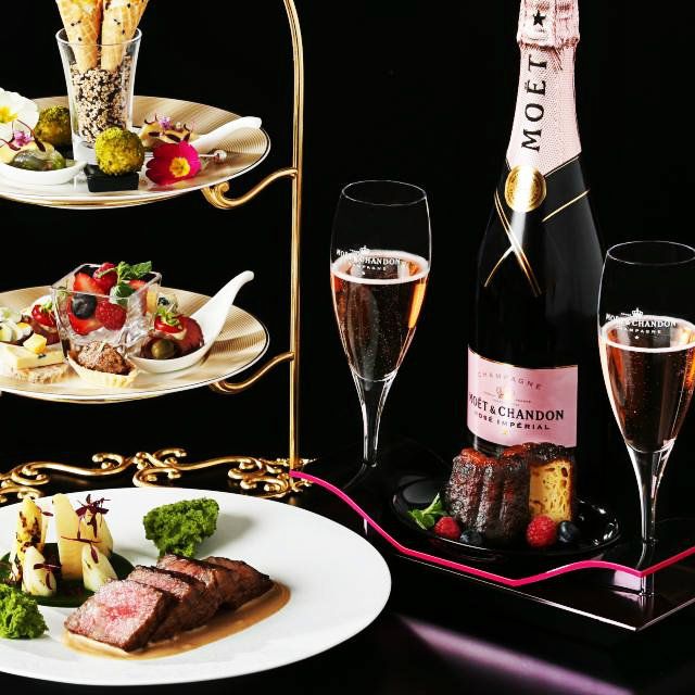 “モエ・エ・シャンドン ロゼ”ボトル1本付き シャンパンフリーフロー&ジュエリーオードブル+ダブル熟成牛