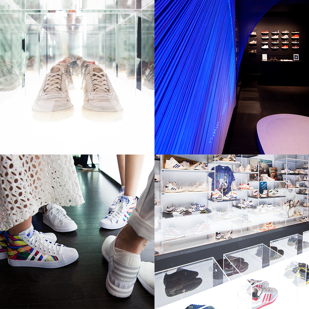 そんな中、adidasからこれまでに発売された膨大な数のスニーカーを集めた展示会「交差点|交差展」が東京・原宿のBANK GALLERYで2016年5月8日(日)まで開催中。スタン・スミスやYoung Juvenile Youthなどが登場して話題になったオープニングパーティーから、会場の様子を少し紹介します。