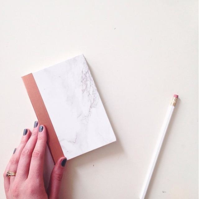 まるで大理石と銅が使われているようですが、これらは本物ではなく、大理石や銅を思わせるマテリアルをノートの表紙にくっつけているだけのもの。作成したのはアーティストのTeri Munceyさん。つくり方も解説しています。