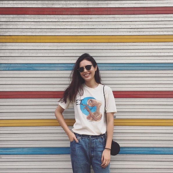 シンプルだからこそ難しいデニムスタイル。80年代テイストの大きめTシャツをポイントにINしたり、90年代を彷彿とさせる編み上げがキュートでタイトなトップスに、映画『レオン』のマチルダのようなチョーカーでワンポイントをつけています。