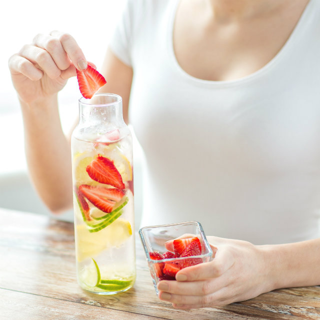1日に水をたくさん飲むのは美容の基本ですが、自然なフレーバーが付くので水を飲むのが苦手という人にもオススメなのがデトックスウォーター。ミネラルウォーターに好きなフルーツや野菜、ハーブを入れて2時間以上冷蔵庫で冷やすだけでOKと簡単に作れます。