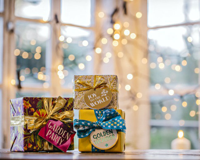 LUSHによれば「ガーデン パーティー」と「シークレットガーデン」のラッピングに使用されている“コットンペーパー”は、インド現地のコミュニティでTシャツの生地や麻袋をリサイクルして作られたものが使用されているとのことで、現地の人に雇用の機会を与えているサプライヤーkahdi社のものを使用しているそうです。また「シークレットガーデン」のリボンもLUSHのクリアボトルを粉砕したものを再利用して作られたサテンリボンが使用されています。
