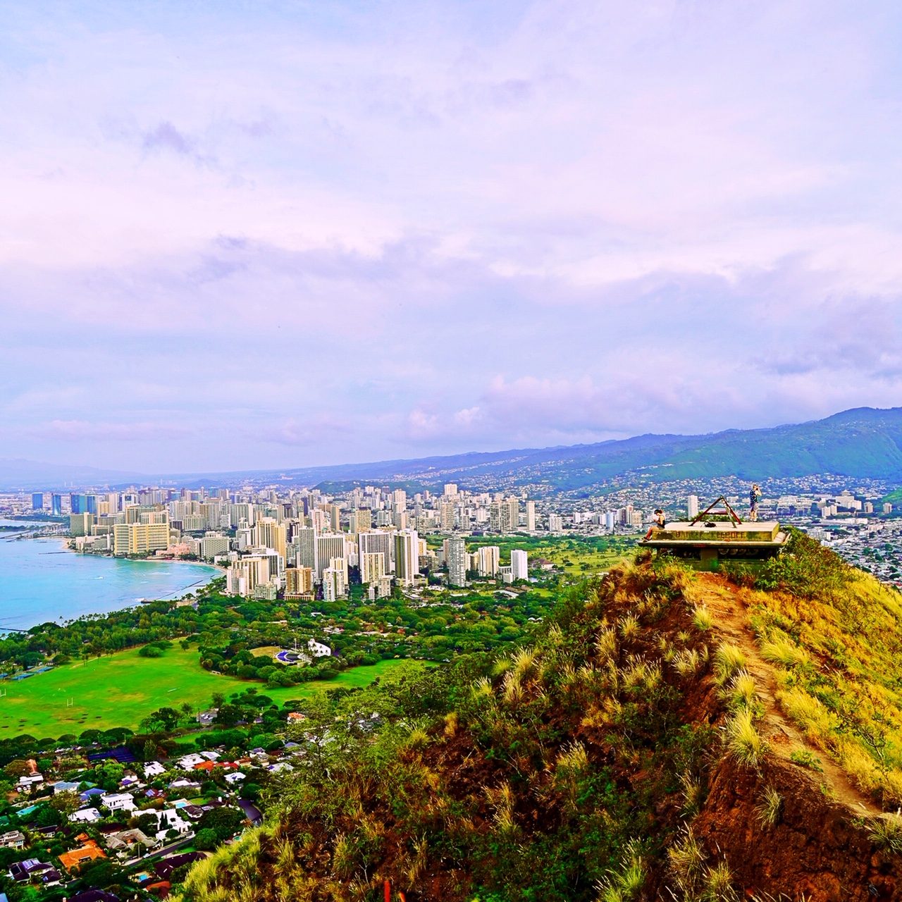 ハワイ・オアフ島のオススメスポットを聞くと必ず名前が挙がる【ダイヤモンド・ヘッド】。ワイキキのビーチからならどこからでも見え、その姿を目にすると「ハワイに来たなぁ」と実感する方も少なくないはずです。頂上からはワイキキの街並みやビーチを一望できる絶景スポットで、特に雨季(10月〜3月)は日の出を見ようと早朝から登頂する人が大勢います。