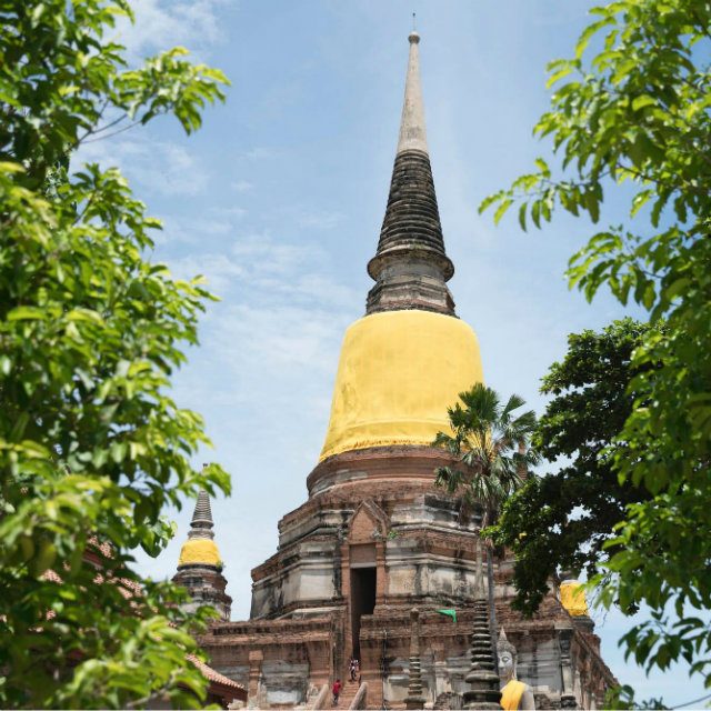 (3)鮮やかなゴールドの布を纏った高さ72mの仏塔が目印「ワット・ヤイ・チャイ・モンコン」