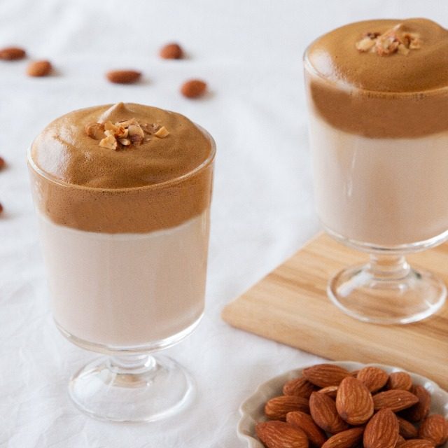 仕事中のお供に、一息入れたいリフレッシュタイムに「コーヒーを飲む」という方は少なくないと思います。中でもコーヒーに牛乳や生クリームを入れる方にオススメしたいのが、可愛い見た目でいまSNSで話題の【タルゴナコーヒー】。アーモンドミルクを使用することでヘルシー&低カロリーに愉しめます。