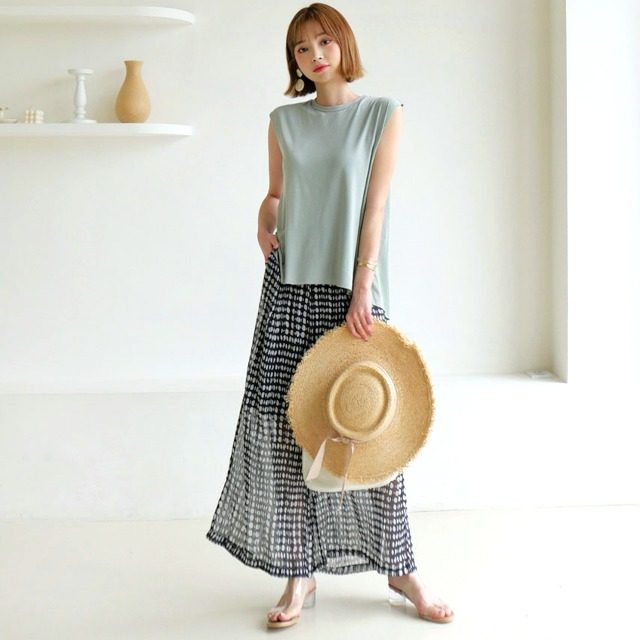 |揺れ感×透け感のワイドパンツで一層涼やかな装いに