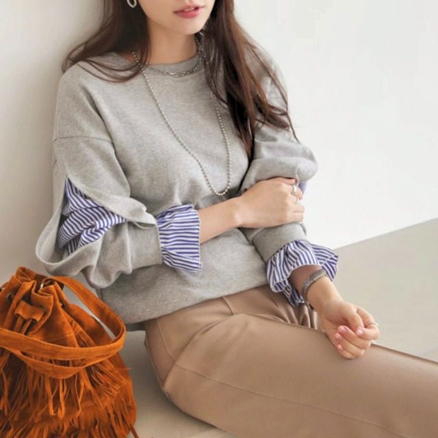異素材ミックスで洒落見え間違いなしのレイヤード調デザインのスウェットは、コーデをあれこれ考えなくてもラクちんにキマるデイリーコーデの強い味方です。