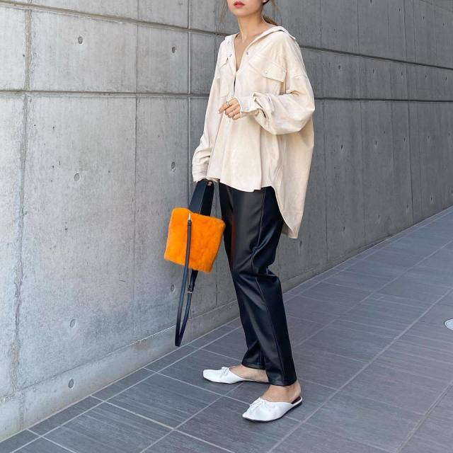 今シーズン「初挑戦!」という方も少なくないエコレザーパンツですが、履き心地も良く上品見えするので、甘めなカジュアルトップスとの合わせでも大人感たっぷりに着こなせます。ぜひ参考に旬なおしゃれスタイルにトライしてみてくださいね。<text:Hiromi Anzai top image出典:#CBK>