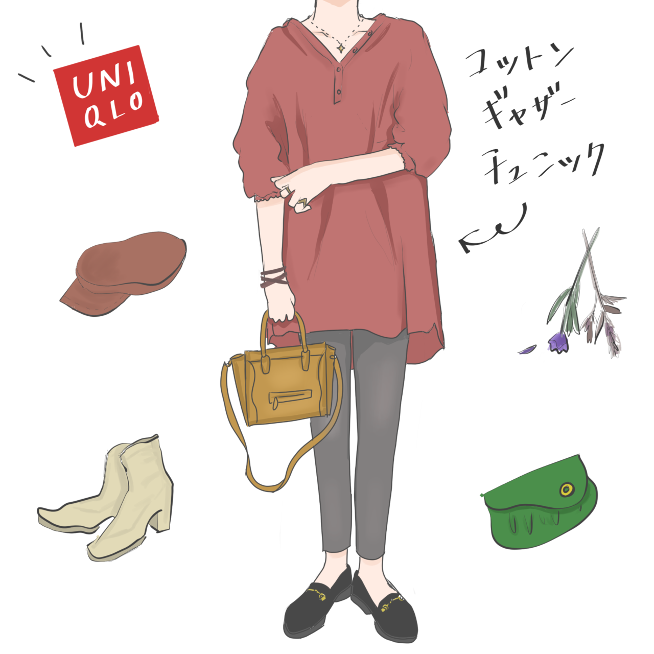 夏→秋の変わり目は、コーデが何かとシンプルになりやすいですが、大人感や華やかさをちょっぴり加えて差のつくおしゃれを楽しみたいものです。そこでおすすめのアイテムが【ユニクロ】の「コットンギャザーチュニック」。華やかぎ感のあるデザインで秋口のデイリーコーデの素敵なアクセントになってくれます。
