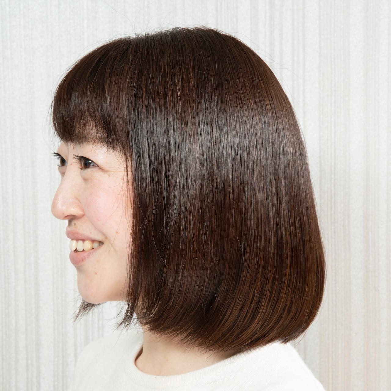 見事、ツヤ感としっとりとした潤いを感じる自然なストレートヘアに。Sさん自身も「髪の手触りが劇的に変化した!」と驚いていました。