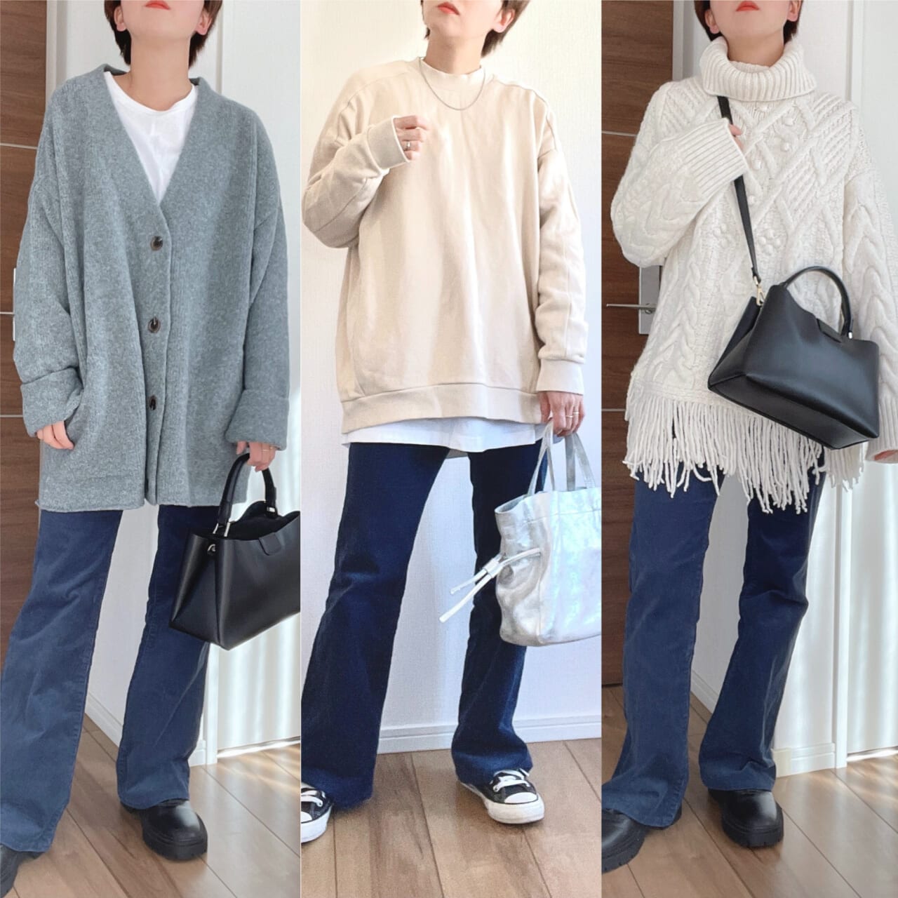 旬なシルエット×高い美脚効果【GU】「コーデュロイフレアパンツ」大人の着回しテク