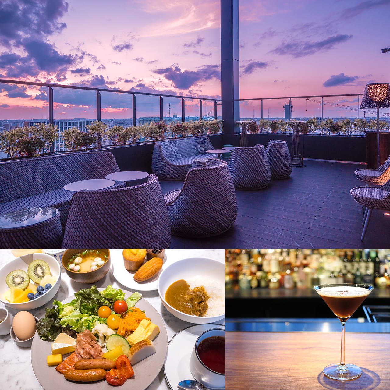 ハイアット セントリック 金沢でナイトシーンを満喫するなら、おすすめのスポットは14階にある「ルーフテラスバー」。上質な雰囲気のカウンターバーと、その名のとおり街を浮遊しているようなオープンテラスを備えます。