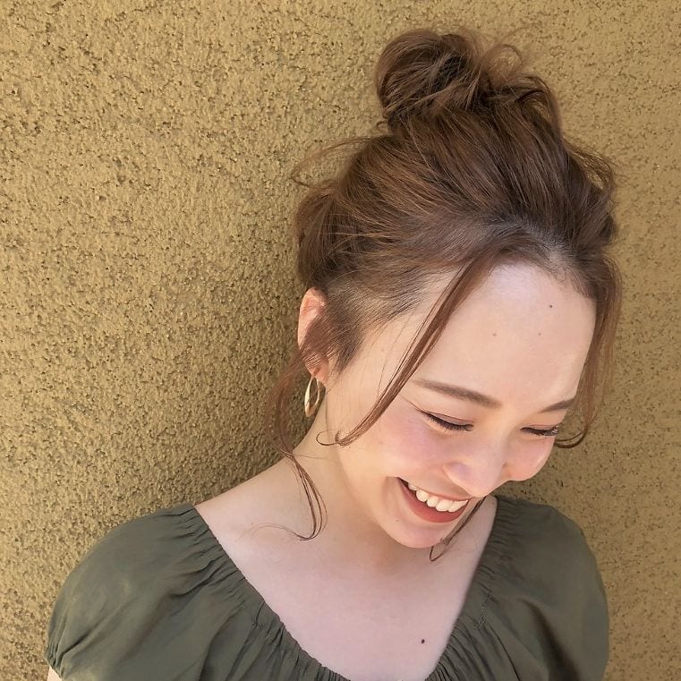 |後れ毛の演出で抜け感たっぷりお団子ヘア