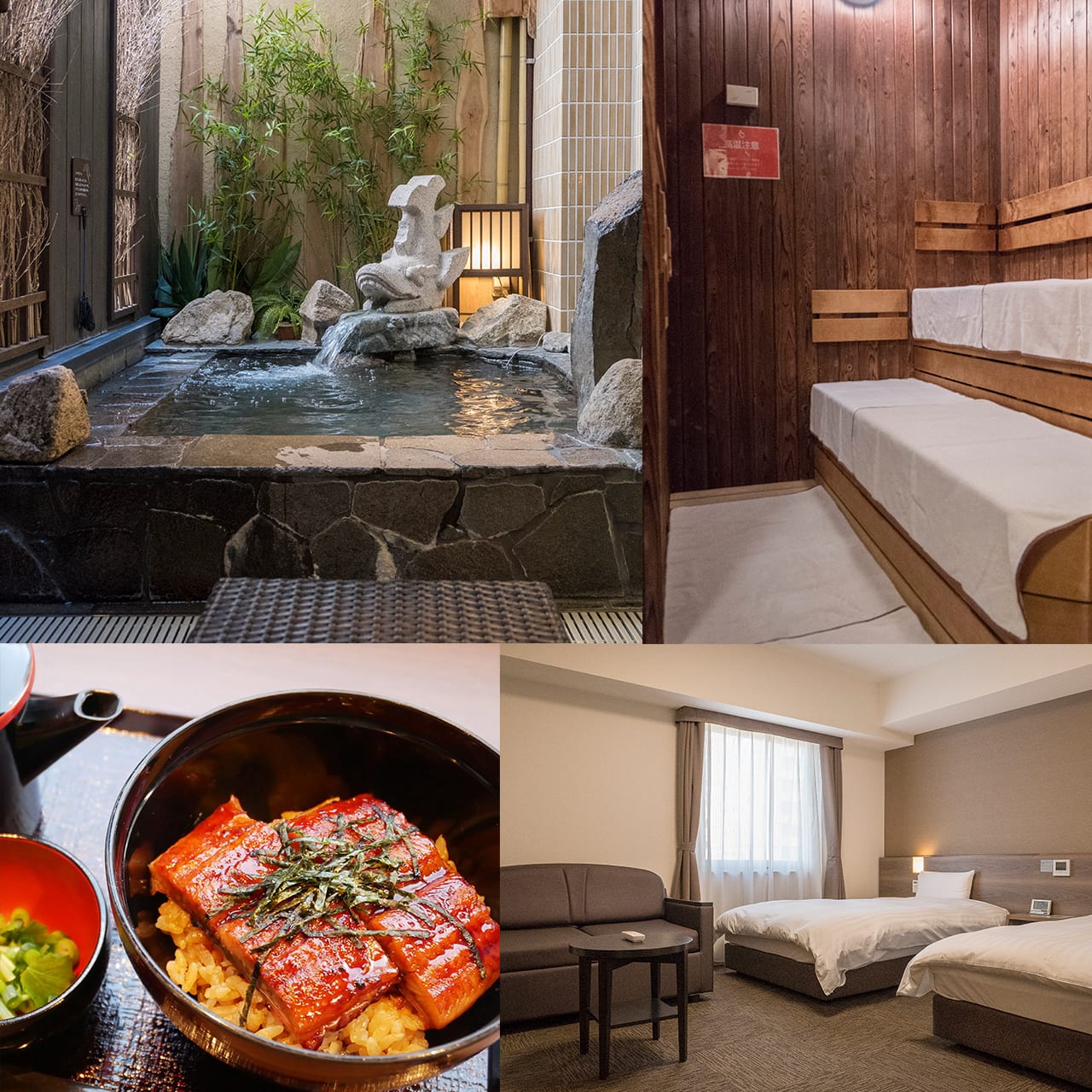 |温泉とサウナ、露天風呂でリラックス