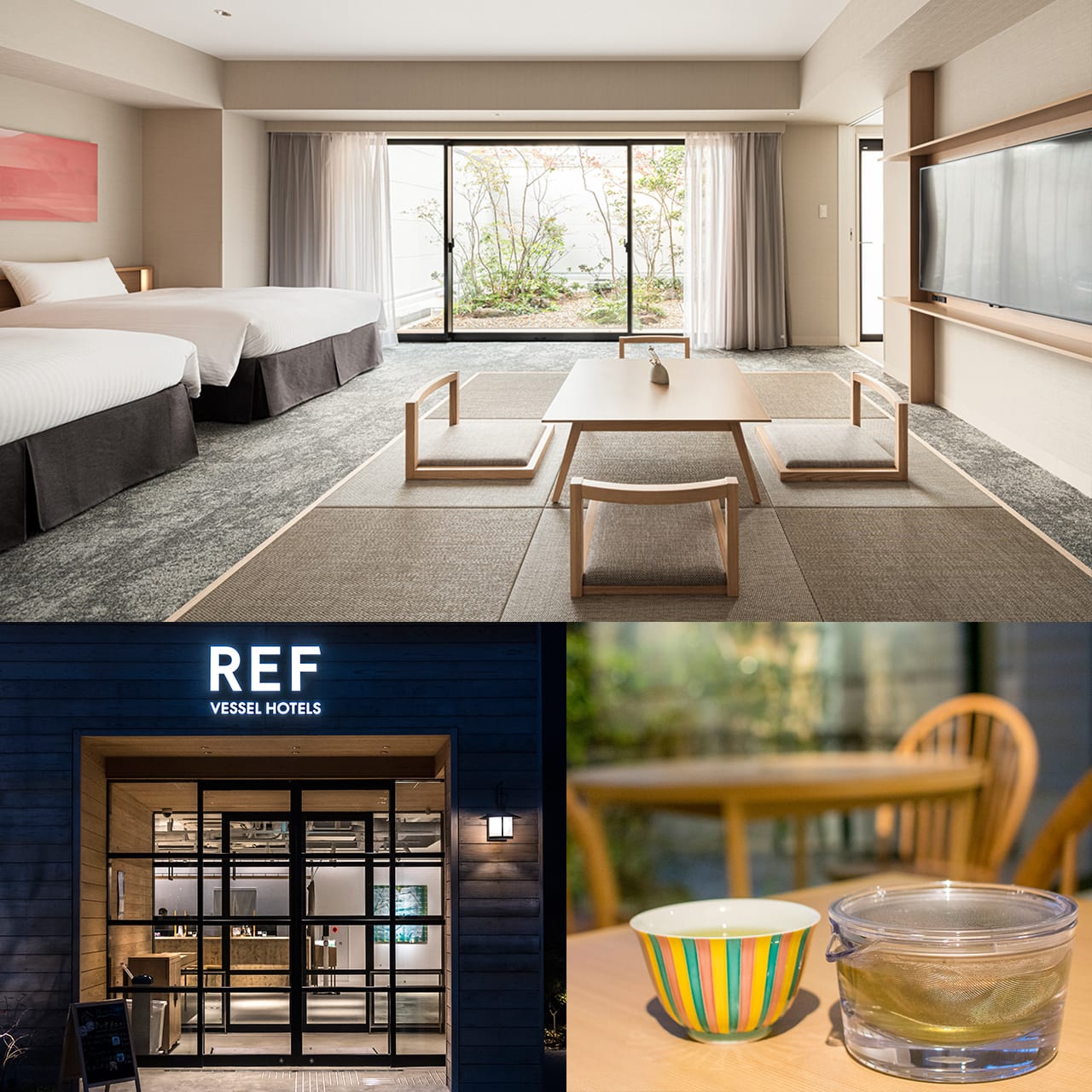 2021年春にオープンした【レフ京都八条口 by ベッセルホテルズ】。ロビーやラウンジなど広々としたパブリックスペースには、京都のお茶をメインに、ウェルカムドリンクを用意。リラックスして過ごせる京都駅近くのカジュアルホテルです。