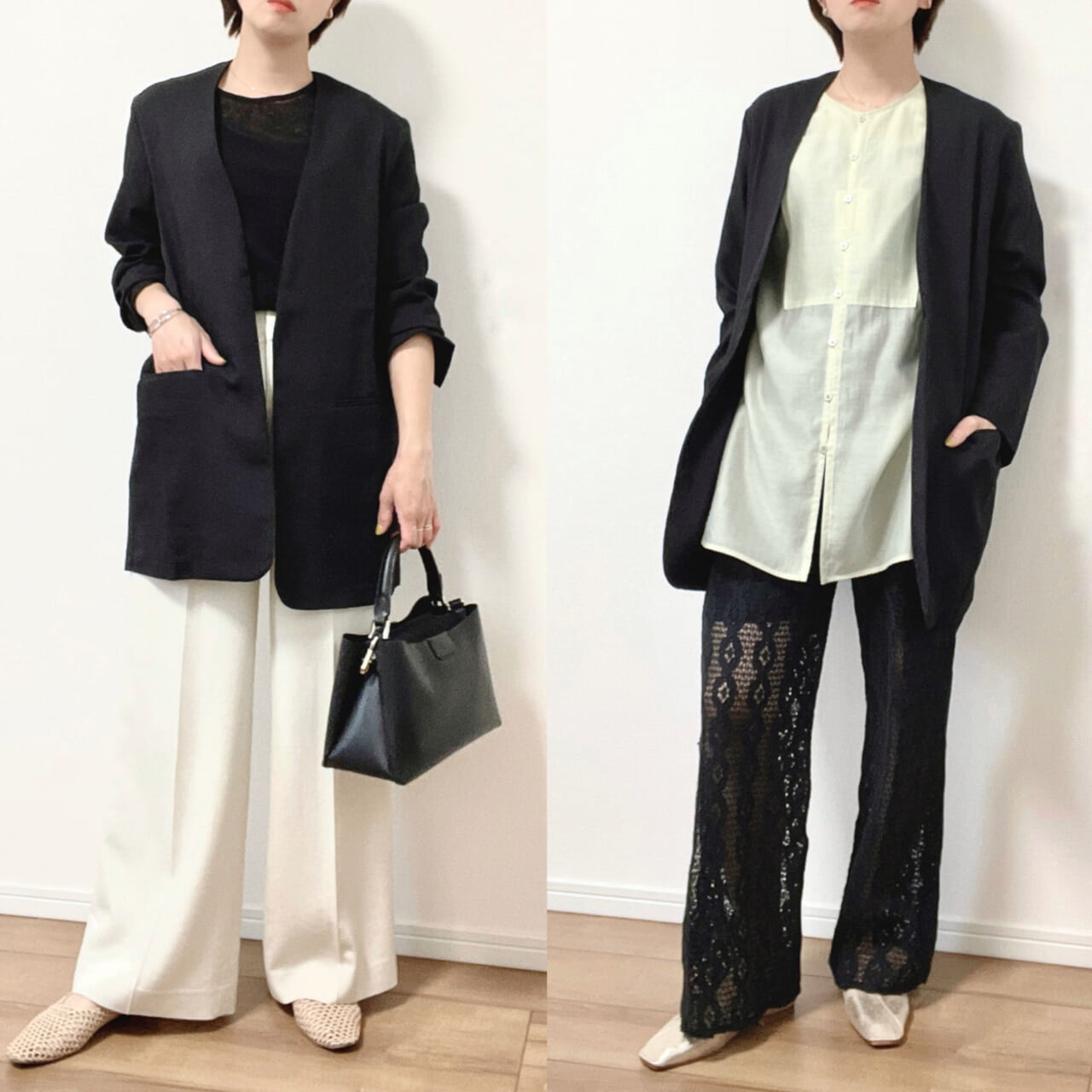 買って正解!152cmライターが惚れた【titivate】ミニマムで大人顔「ノーカラージャケット」