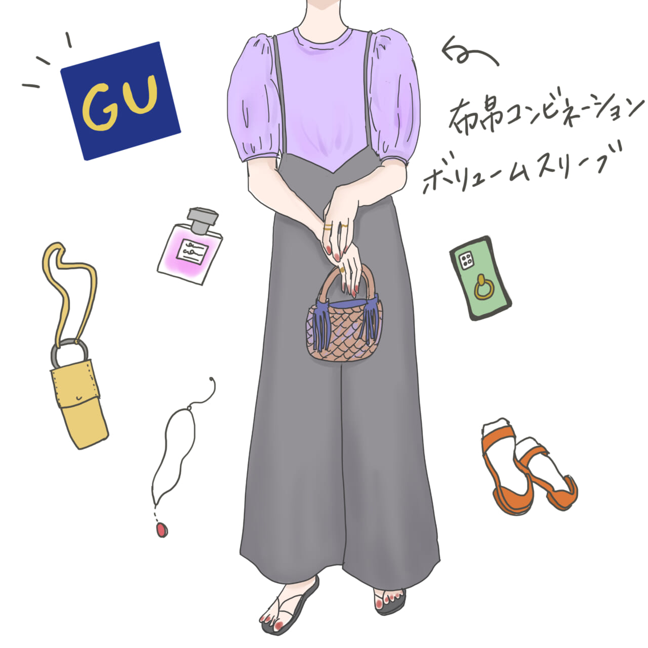 シンプルな夏コーデにこそ投入したい。華やぎをON【GU】ボリュームスリーブTの着こなし