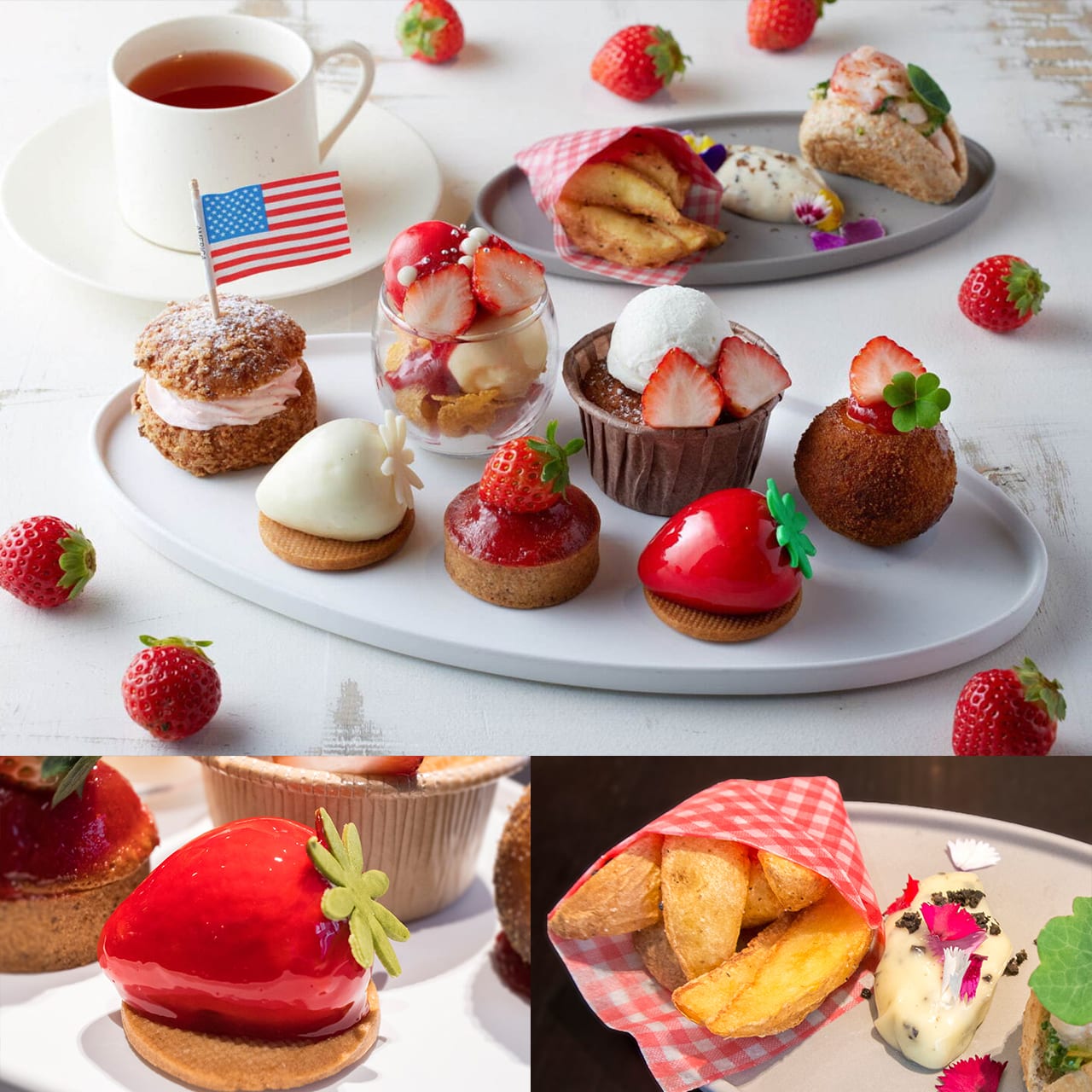 ▲7点のスイーツと2点のセイボリーを用意するストロベリー ポップ アフタヌーンティー