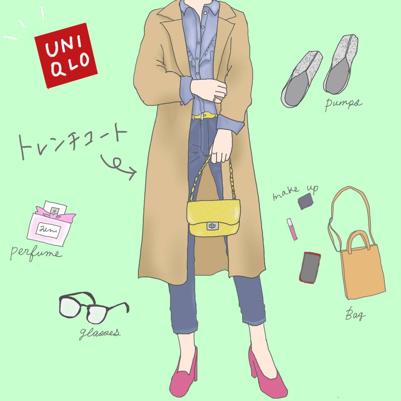 |春カラーを意識したワントーンコーデで重見え回避