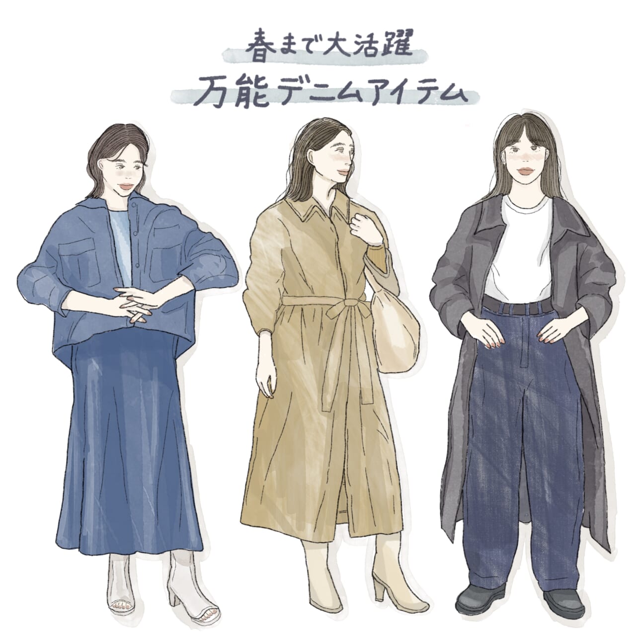 デニムはコーデに採り入れやすい定番アイテムですが、シルエットやデザイン、組み合わせを変えて、簡単に新鮮さのあるコーデを叶えたいところ。そこで今回は、春っぽさの演出にも使える【万能デニムアイテム】をデイリーコーデに採り入れるコツとともにチェックしてみましょう。