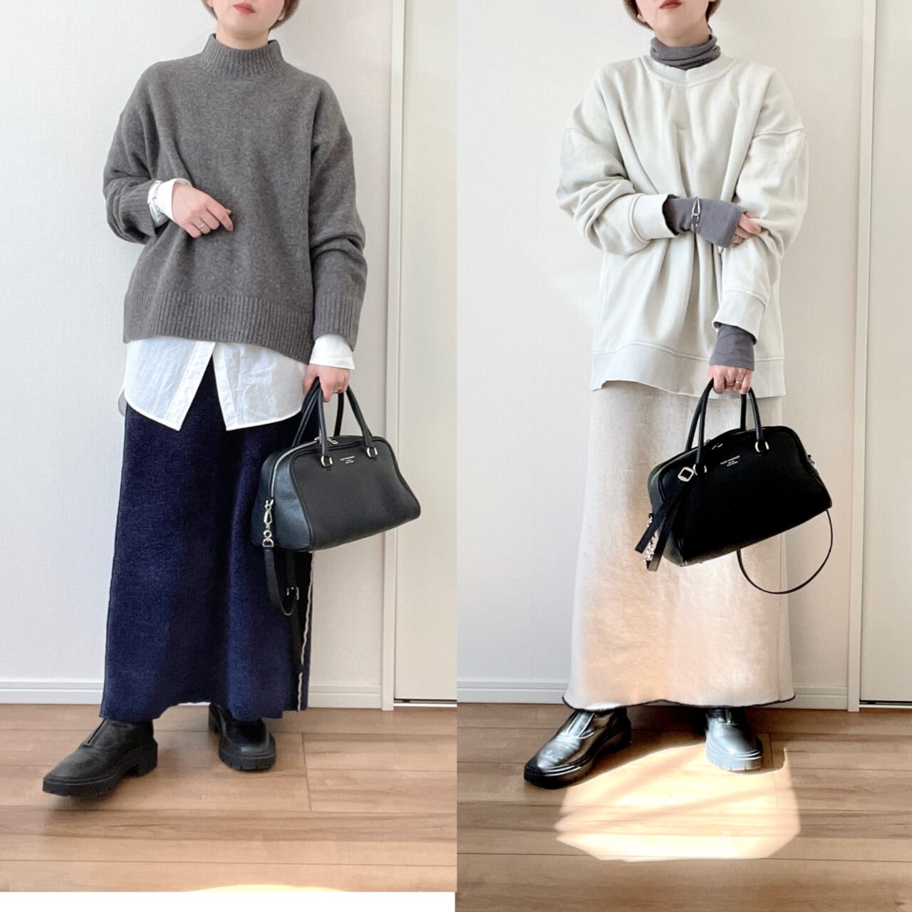 厚手でかさばる冬アイテムだからこそ、ワードローブはなるべく少ないアイテムで、かつ着こなしに幅をもたせられたら理想的。そこで今回見つけたのが、1着で2つのデザインが愉しめるニットスカートです。
