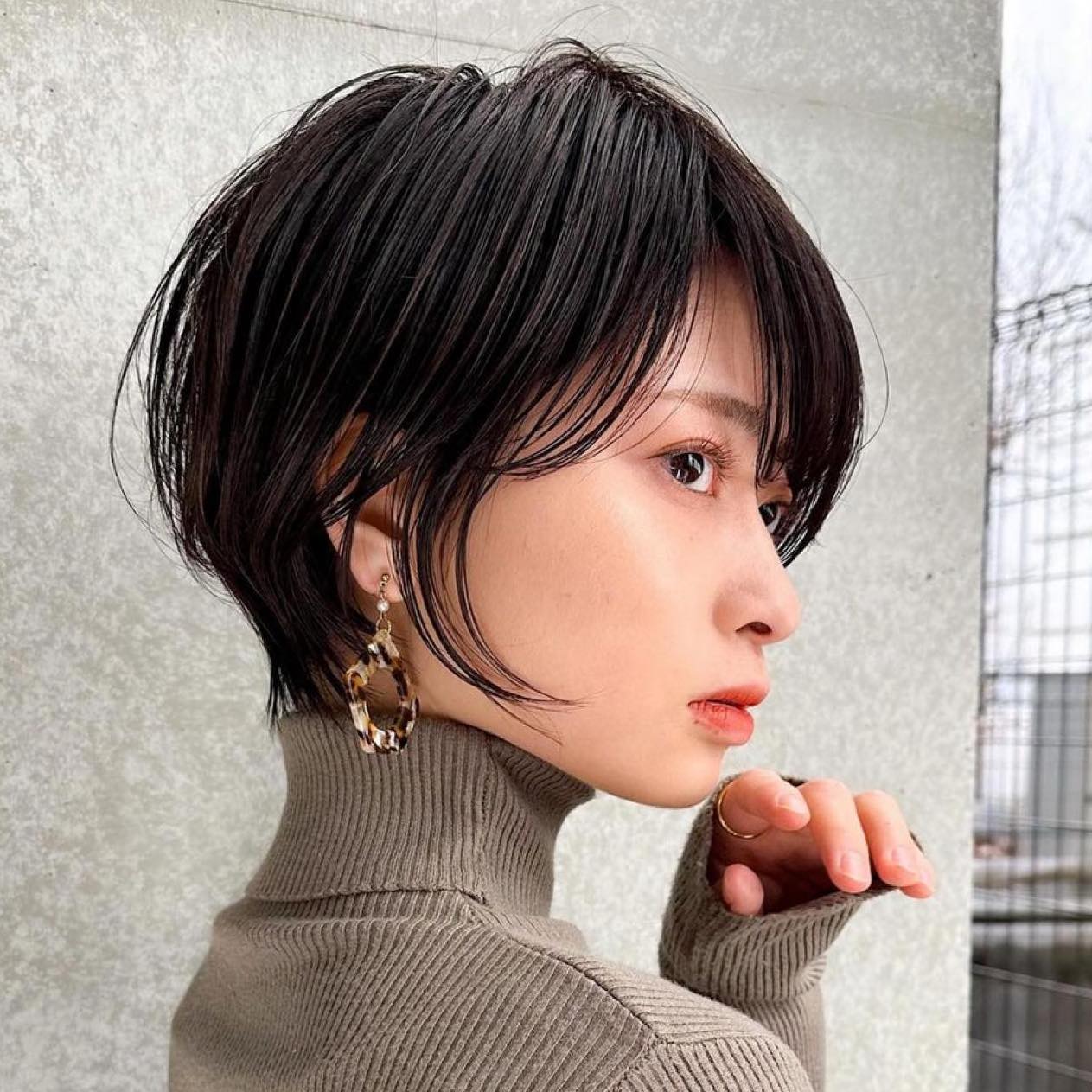 トップにはボリュームと丸みを持たせ、襟足にかけてスッキリ締めるメリハリのあるシルエット作りが小顔感UPの鍵。マニッシュだけどオンナっぽい絶妙バランスのヘアスタイルは、きれいめからカジュアルまで幅広い雰囲気のコーデと好相性です。