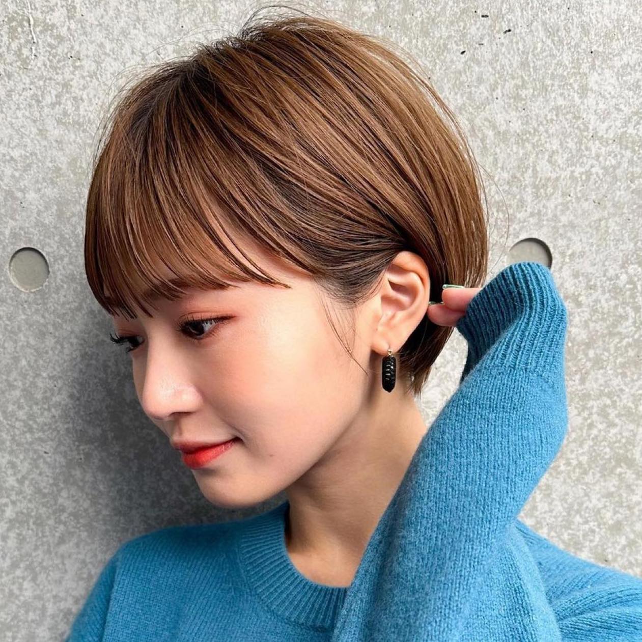 前髪を長めに設定するのも小顔効果を高めるポイント。サイドの髪と自然になじませるようにスタイリングすることで愛らしさをグッと引き上げましょう。なお、ヘアカラーは気持ち明るめのトーンにするとこなれた雰囲気を醸せます。