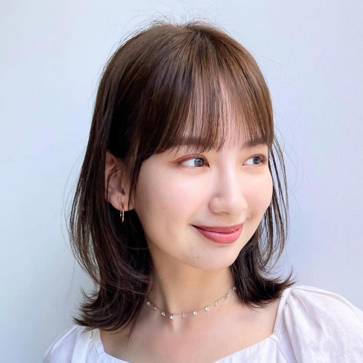 こなれ感をより高めるためにも、毛先すべてを外ハネにするのではなく、内巻きベースでところどころに外ハネをMIXするのがポイント。また、前髪を透け感たっぷりに仕上げて軽さを演出することで、印象を左右する眉毛も程良く見えるので表情もイキイキとしてきます。