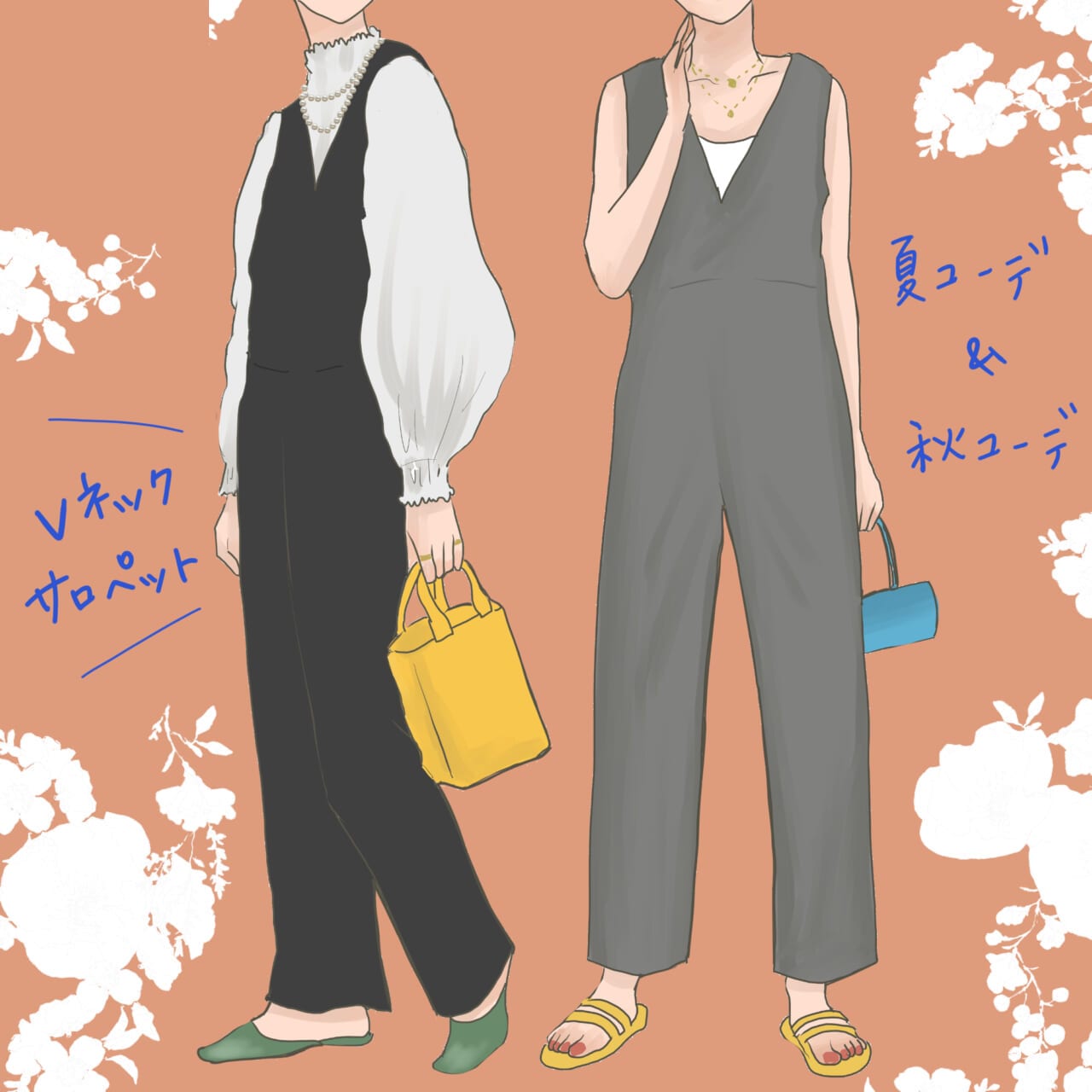 中に着るインナーや合わせる小物でも雰囲気が大きく変わるサロペットは、秋まで着回しできてラクちん&おしゃれな大人コーデの強い味方。中でも「Vネック」のデザインを選ぶとスタイルアップ効果や小顔効果も狙えます。