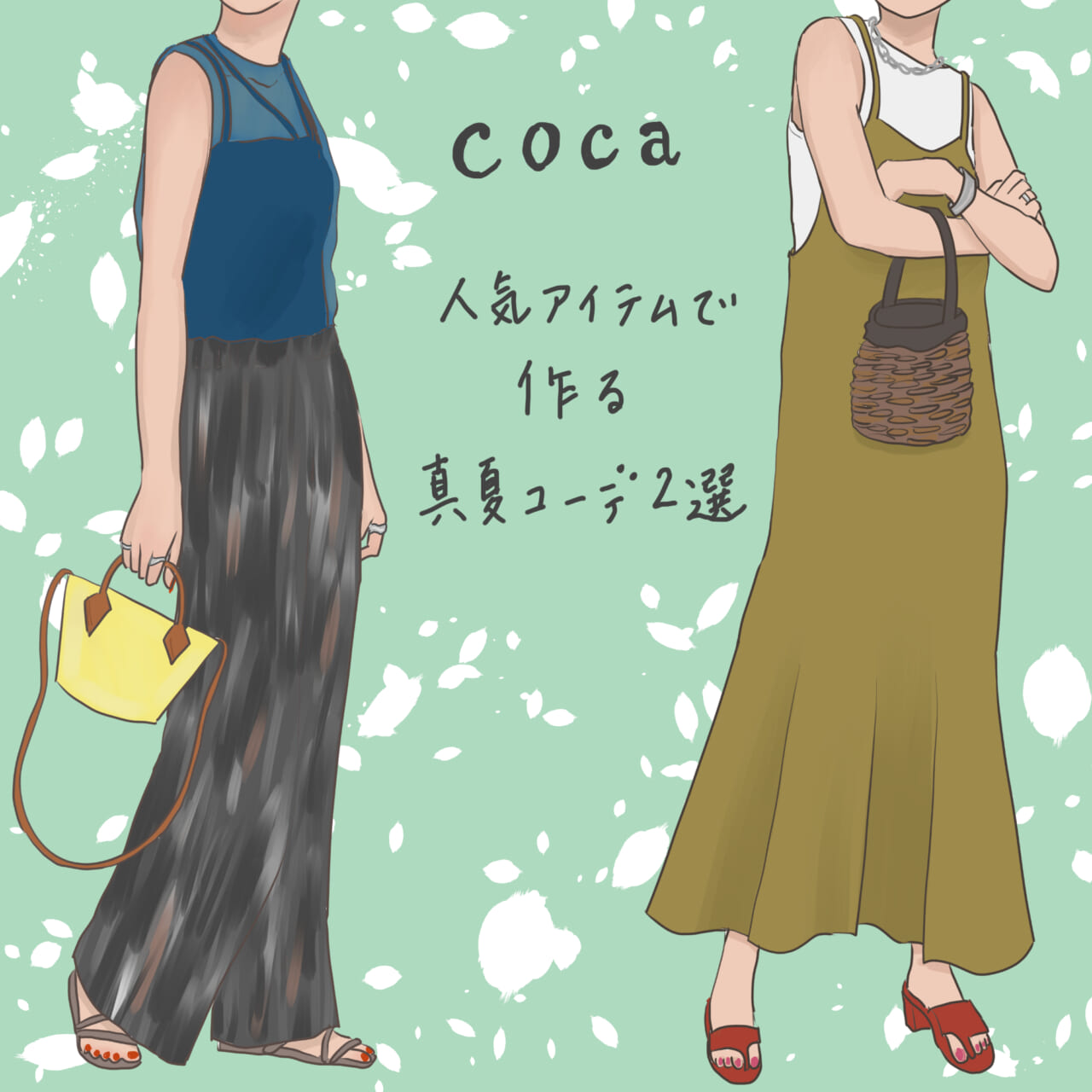 旅行やお出かけすることも多くなるこれからの季節は着るだけでテンションの上がるアイテムを買い足しておきたいもの。そこで今回は、コスパ高めで大人コーデに大活躍間違いなしの【coca】で見つけた優秀アイテムをを使った、大人の真夏コーデを紹介します。