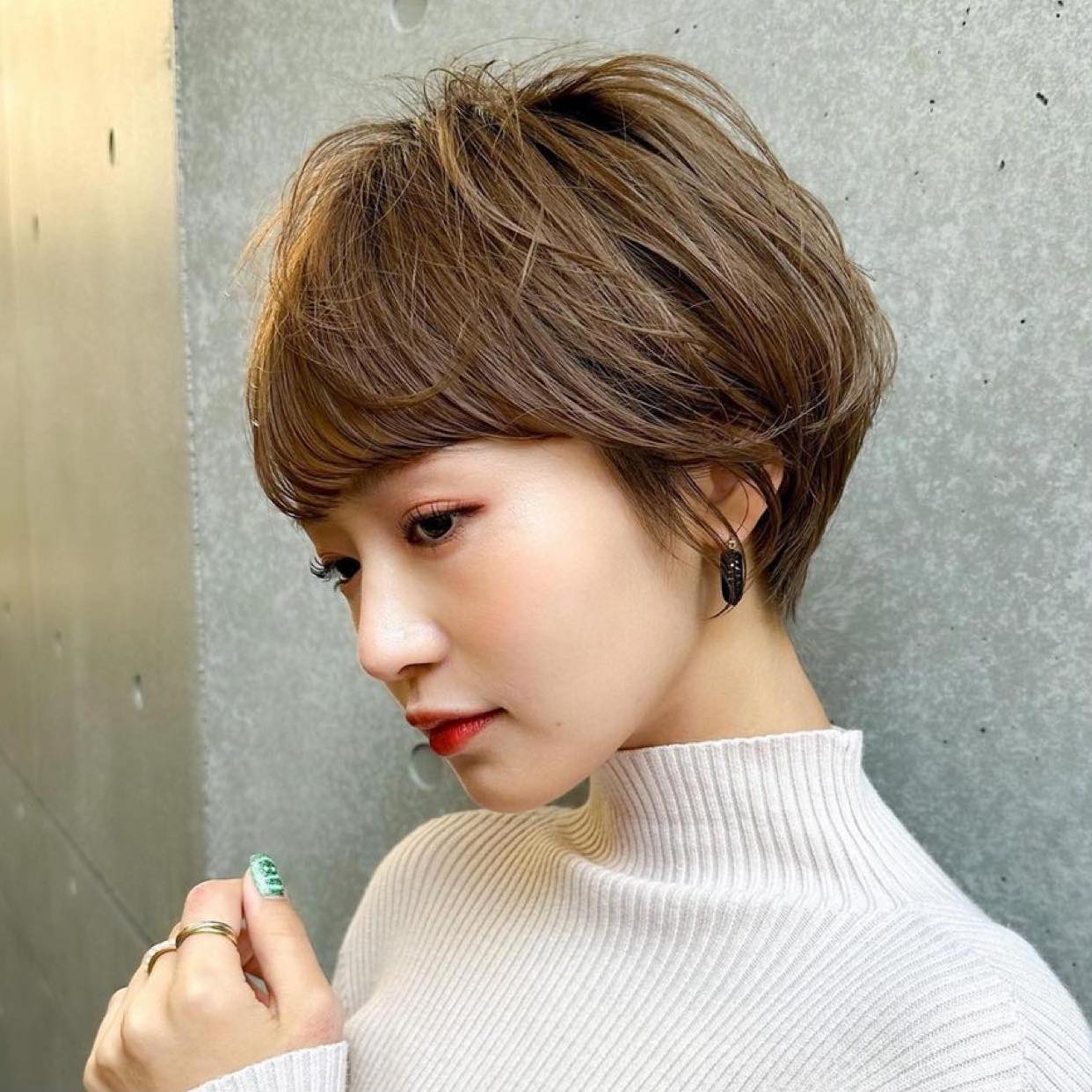 フェミニンで若見えするコンパクトな丸みショートヘア。スタイリング時にふんわり感を出しつつくびれを強調すれば、旬なスタイルに簡単にアップデートできます。程良いボリューム感を活かすように毛先を中心にワックスやバームを揉みこみ、ほんのりツヤ感を補うのもアカ抜けのポイントです。