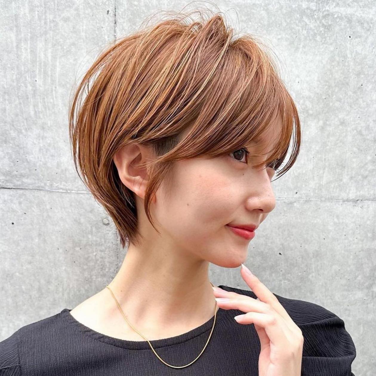 ショートヘアを作る上で注目すべきポイントが“前髪”です。中でも透け感たっぷりに長めに仕上げた前髪は色っぽさと同時に凜々しさまで演出してくれるので、自然と大人っぽさを引き立てます。