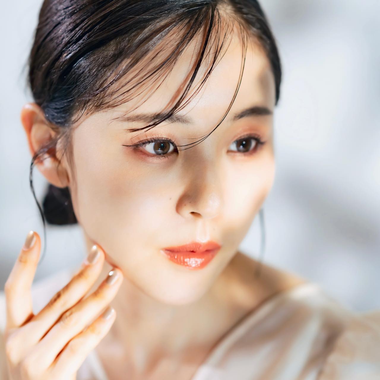 チークとリップについては、かつてのスモーキーメイクではチークは抑えリップもヌーディなカラーで抑える、もしくはリップはヴィヴィッドな赤リップをもってくるといった二極でした。今っぽいスモーキーメイクに仕上げるポイントは、チークもリップもほのかに血色感のあるアイテムを使うこと。普段使っているような、わりとコンサバな色味のものを使ってOKです。