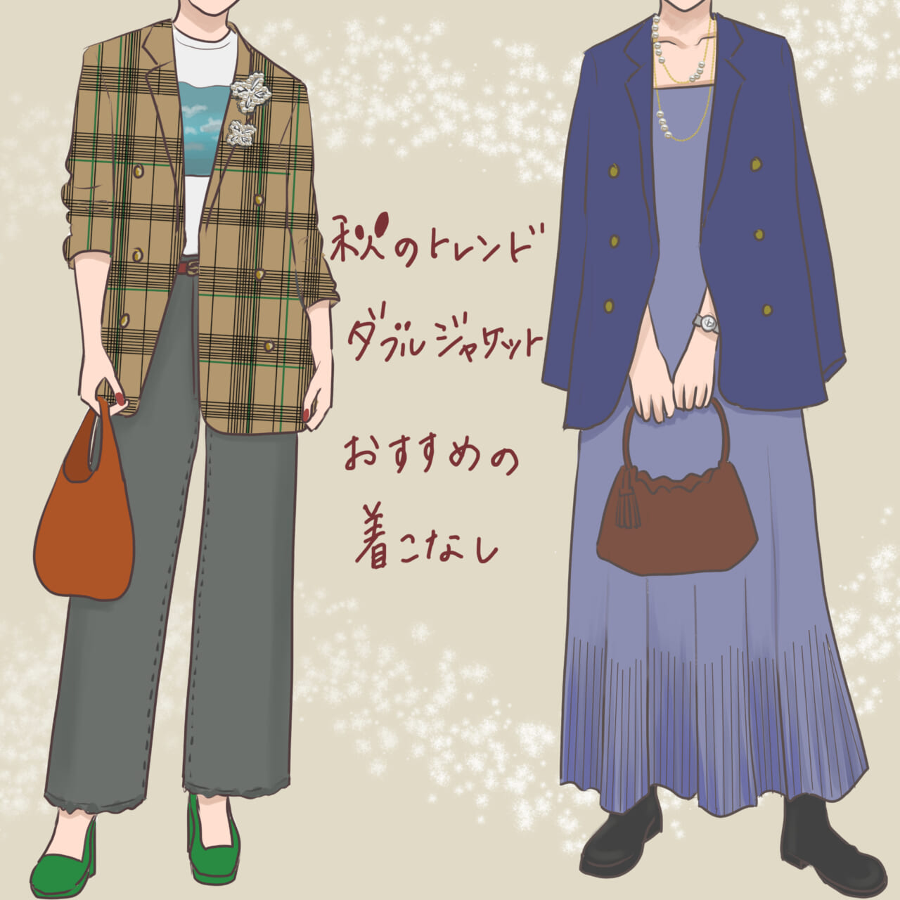 体型カバーもできて、夏アイテムにも合わせやすい「ダブルジャケット」は季節の変わり目のコーデにぴったり。ぜひ参考にしてみてくださいね。<text&illustration:Chami>